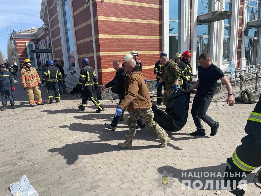“Ракета влучила у тимчасовий зал очікування, саме там перебували сотні людей, які очікували на евакуаційний потяг. Це ще один доказ того, що росія жорстоко, по-варварськи знищує мирне населення України, з єдиною метою – вбити”, – зазначають поліцейські.