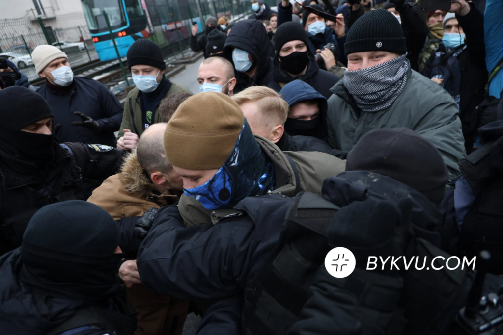 Сьогодні, 4 лютого, під будівлею телеканалу НАШ, що на вулиці Жилянській, сталися сутички між протестувальниками та правоохоронцями.