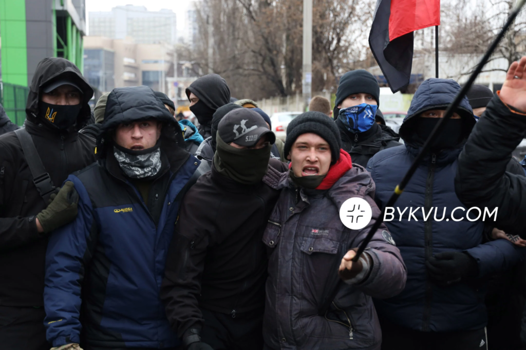 Мітинг під офісом зібрався близько 13-ї години. Серед учасників акції протесту члени організацій “Сокіл”, “Правий Сектор”, “Традиції і порядок” та інші.