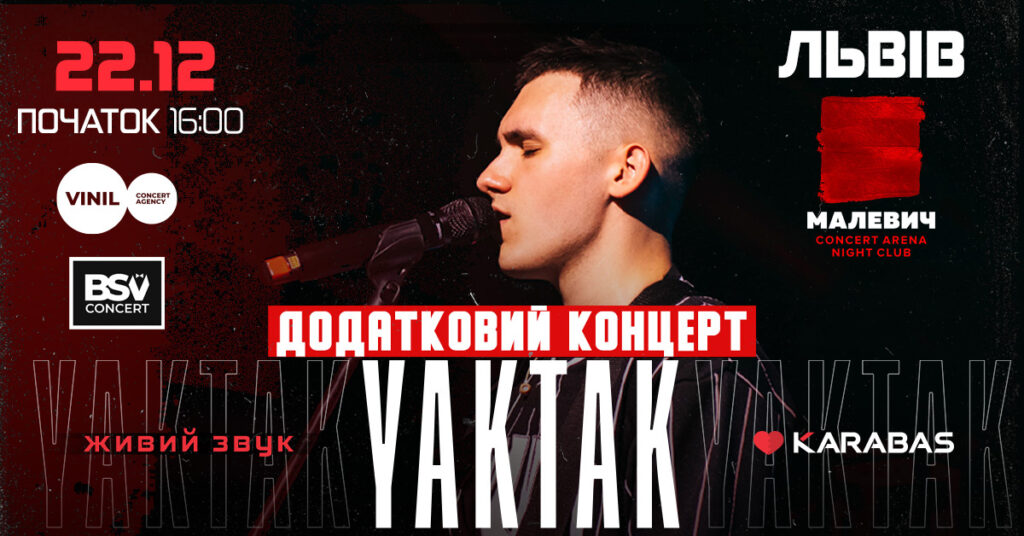 “Пісні YAKTAK влучно поєднуються з життєвими переживаннями кожного із нас! Адже він співає мовою душі, тож у нього є що Вам сказати. Чудовою нагодою почути улюбленого артиста стане сольний концерт у Києві. Побачимось!”, – запрошують на концерт організатори VINIL Concert agency.