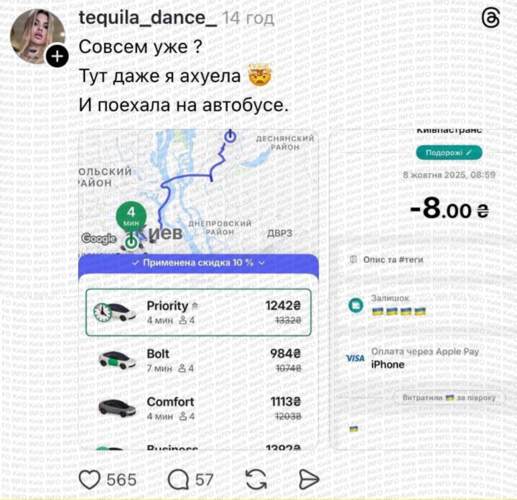 “Ціни на таксі у Києві останні дні шокують”, – йдеться у повідомленні.