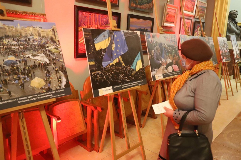 А у фойє філармонії гостям заходу презентували фотовиставку, присвячену подіям Революції Гідності, та тематичні експонати з фондів Львівського історичного музею.