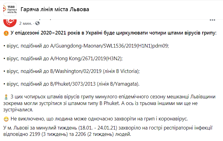 З цих чотирьох штамів вірусів грипу минулого епідемічного сезону мешканці Львівщини зокрема могли зустрітися зі штамом типу В Phuket. А ось із трьома іншими ми ще не зустрічалися.
