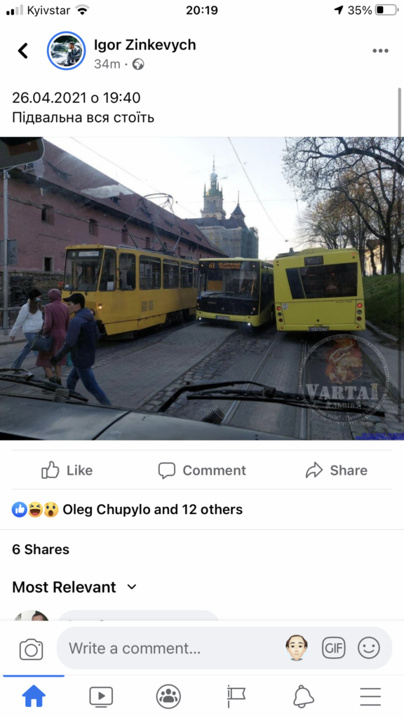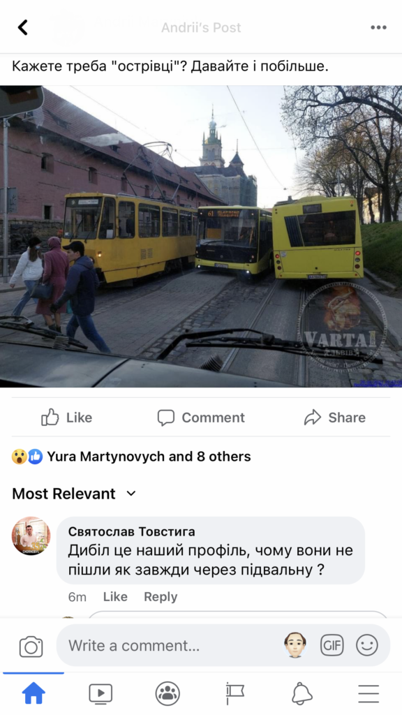 - У Львові автобус “сів” на острівець безпеки, скрін допису