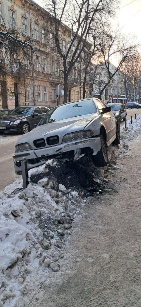 У Львові автомобіль BMW приземлився на стовпчиках