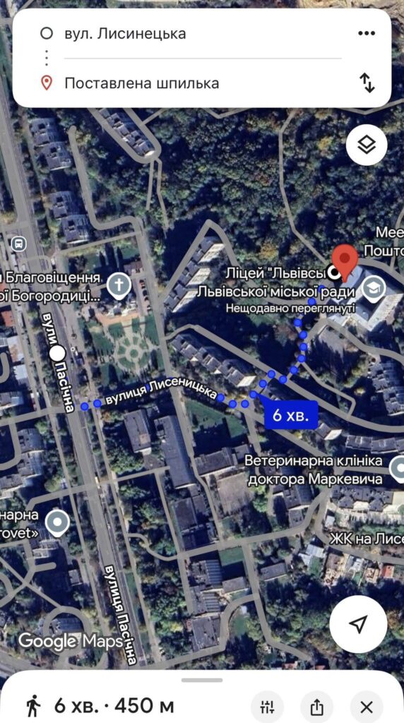 “Для мешканців невеликої вулиці Лисеницької життя ділиться на періоди, коли діти ходять до школи, і коли – ні. При цьому, важким періодом є якраз перший. Вузька вулиця, яка не має обʼїзду, з 8:00 до 9:00 просто наглухо блокується турботливими батьками, які, нехтуючи особистим і чужим часом, ризикуючи прикрими ДТП, мають підвезти дітей саме під поріг школи, замість того, щоб дати їм можливість пройти від найближчої автобусної зупинки цілих 450!!! метрів (є ще коротші шляхи, там десь метрів 300).