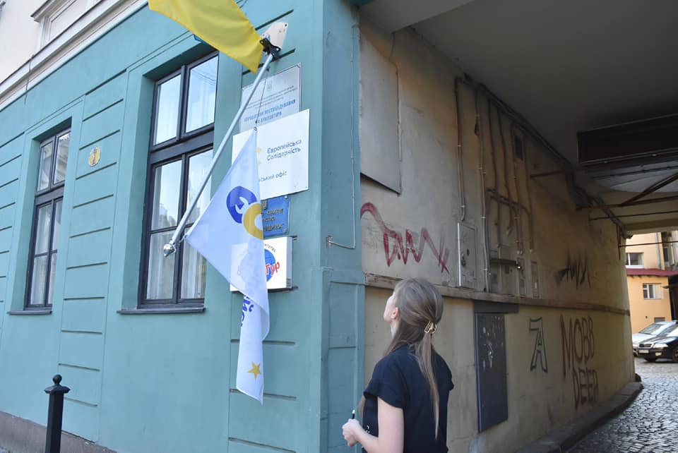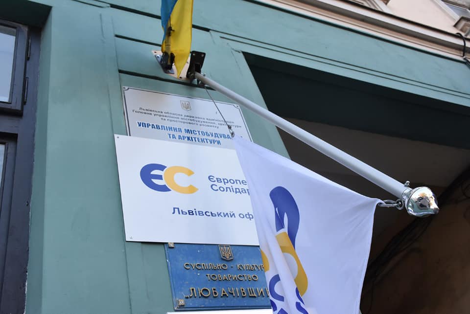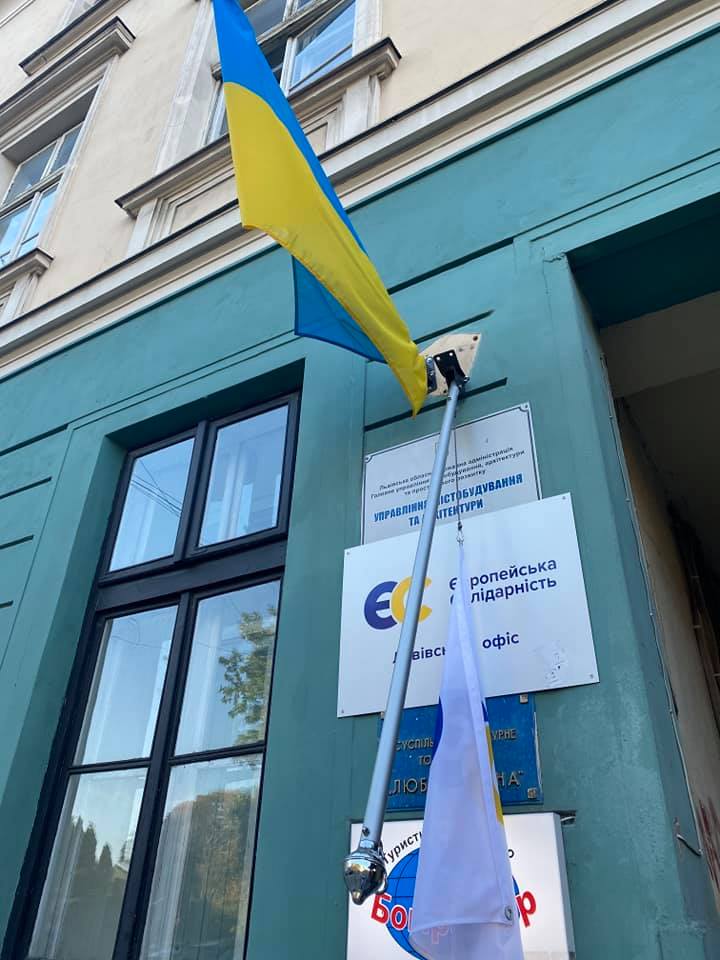 У Львові біля входу в офіс “Європейської Солідарності” зламали флагшток з прапором партії.