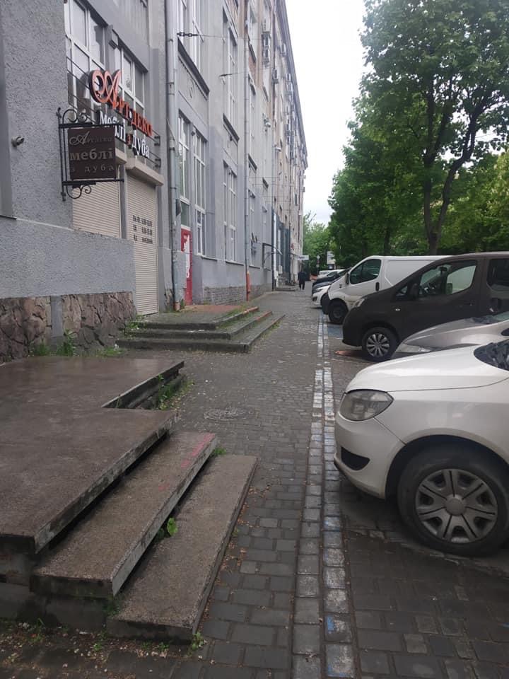 “Неможливий проїзд з дитячим візком через сходинку. Кожного разу потрібно переносити візок, якщо авто припарковане. А вони там припарковані навіть у вихідні дні. Прошу посприяти демонтування сходинок і правильному їх встановленню для зручності усіх пішоходів”, – йдеться у повідомленні.