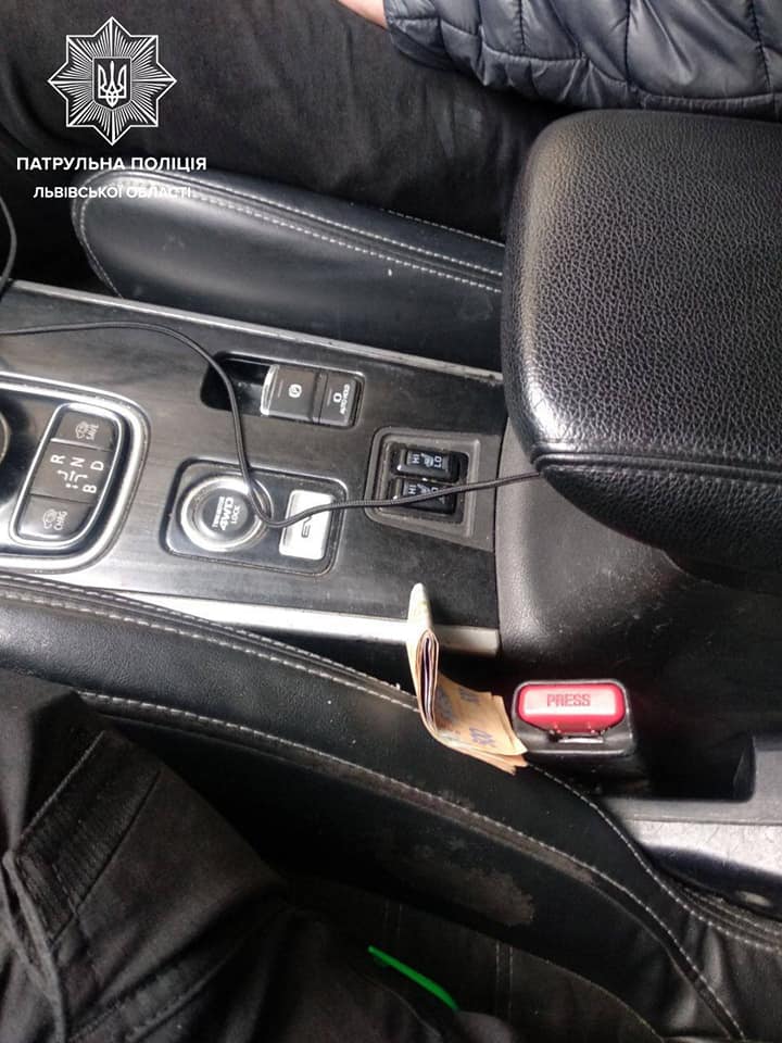 Зайшовши в середину разом із ним, інформація підтвердилася. Під час встановлення особи, 33-річний львів’янин почав пропонувати неправомірну вигоду. На зауваження не реагував. Раптом, він кинув кілька купюр на панель службового автомобіля зі словами: “Давайте закриємо це питання”.