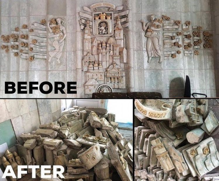 Додамо, що нещодавно така ж історія сталася у столичному готелі “Турист”. 8 жовтня у фоє готелю демонтували горельєфне керамічне панно “Місто на семи горбах”, створене 1986 року Галиною Севрук. Директор готелю Віталій Драган запевнив, що панно зняли “спеціалісти у цій сфері”, і що усі фрагменти збережені “на 100%”. Водночас він заявив, що керівництво готелю шукає “спадкоємця даного шедевру”.