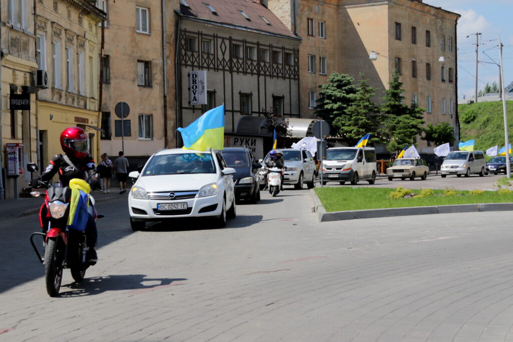 Десятки автівок виїхали на вулиці міста, аби під патріотичні гасла та з національними прапорами, проїхати Шевченківським районом Львова.