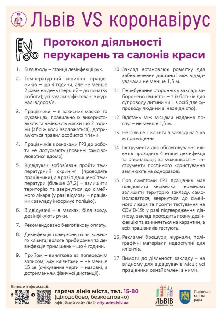 Щойно міська комісія з надзвичайних ситуацій дозволила роботу перукарень, салонів краси, та приватних стоматологічних кабінетів. Але, пам’ятайте, дозвіл на роботу не означає вседозволеність. Маємо зберігати здоровий глузд і не порушувати визначених протоколів.