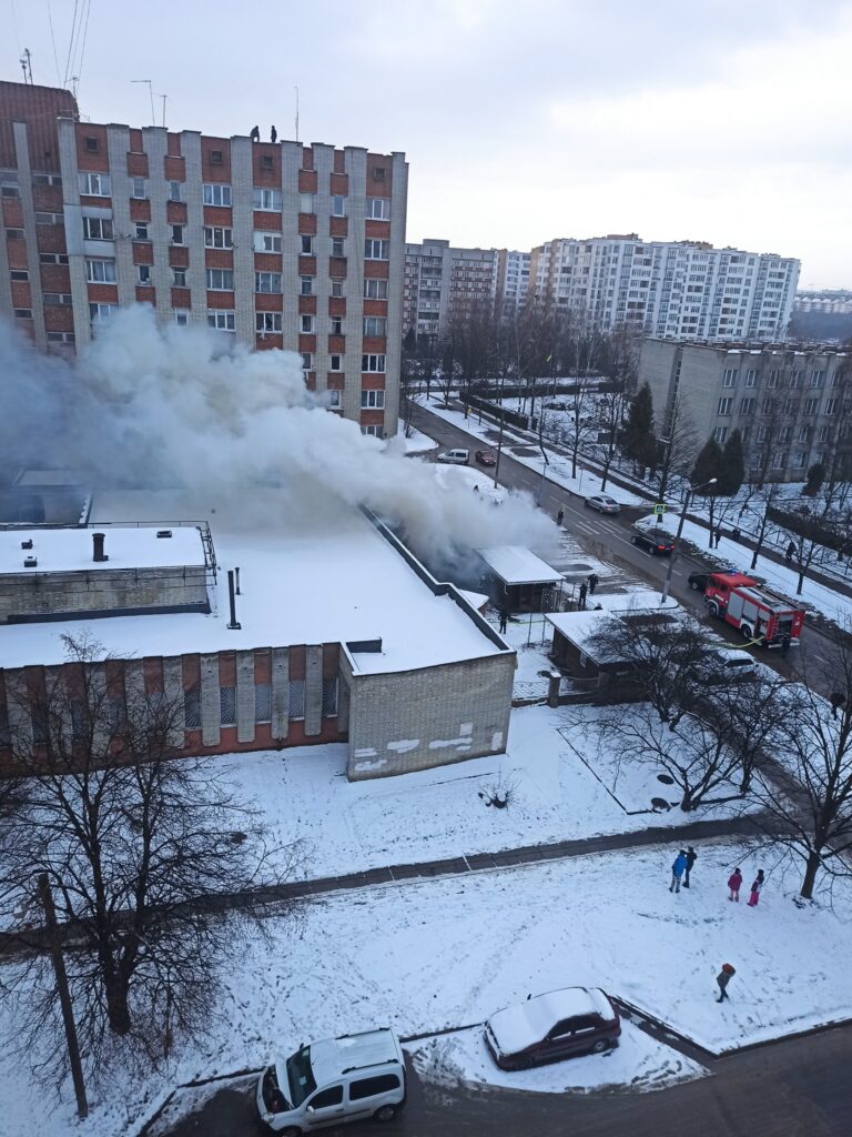 Загоряння відбулося на вулиці Пулюя, 29, де раніше був ресторан.