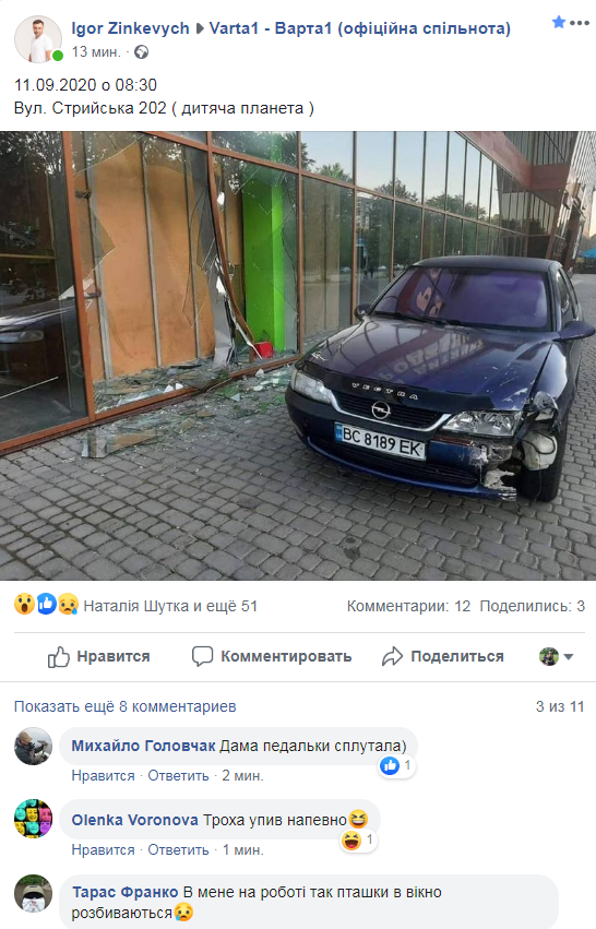 “11.09.2020 о 08:30. Вул. Стрийська, 202 (Дитяча планета)”, – повідомив Зінкевич, який оприлюднив світлини з місця ДТП.