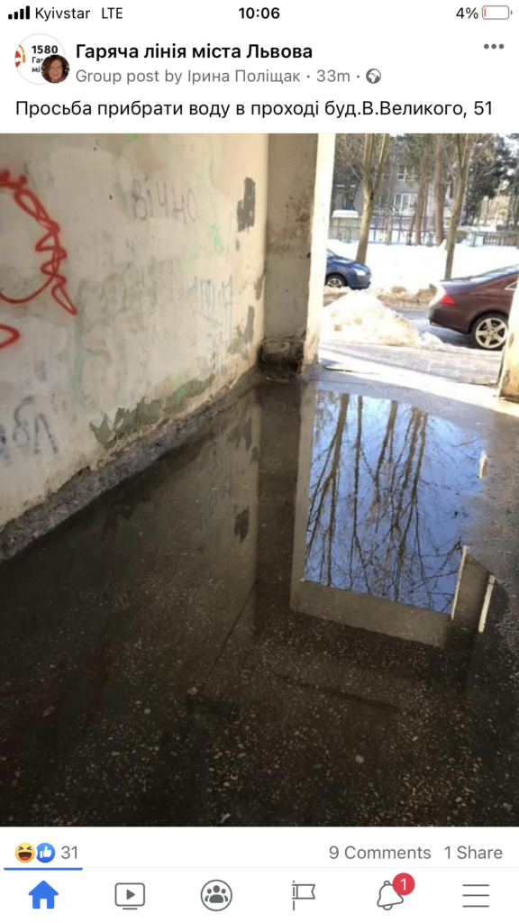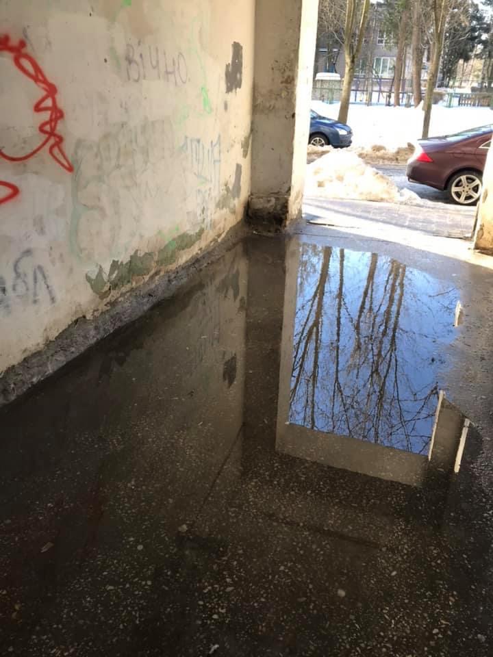 У Львові комунальників просять прибрати воду з будинку на вулиці Володимира Великого.