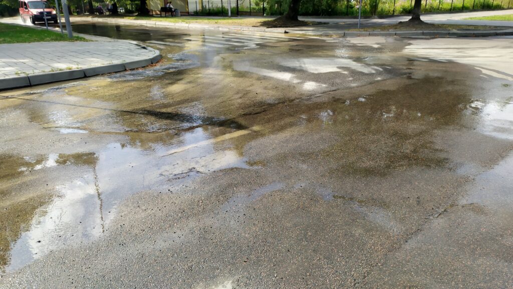 “Отже, 9 серпня 2020 року, Львів, вулиця Івана Пулюя, 30 на проїжджій частині відбувається витік води. Про цю проблему користувачі соцмереж ще з самого ранку почали повідомляти на гарячу лінію міста Львова 15-80. Надалі було здійснено певну кількість дзвінків на гарячу лінію та повідомлено, що відбувається витік води, тріщина дорожнього покриття, вимивання піску, але станом на 17:30 жодна служба не відреагувала на звернення”, – йдеться у повідомленні журналіста.