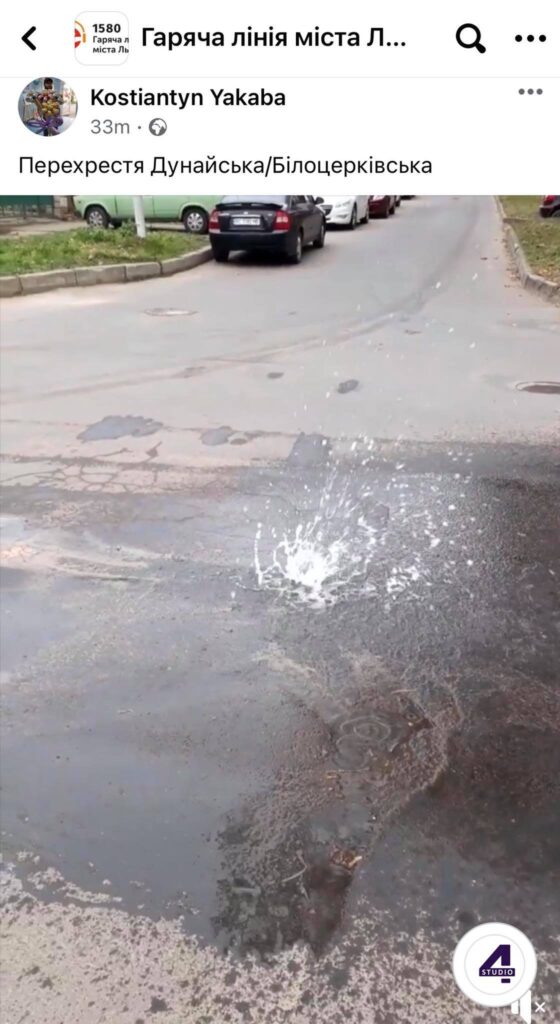 У коментарі під дописом Ірина Хлюбко написала, що трубу прориває кожного тижня. Вона закликаза поміняти водопловід, а не “латати” його.