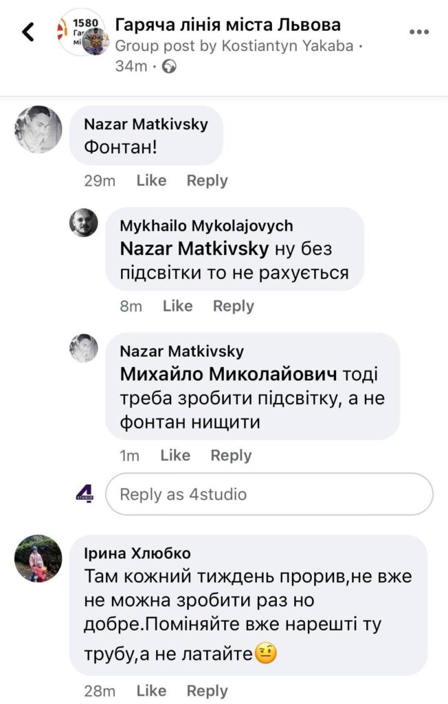 Адміністратор спільноти відповів, що звернення вже скерували у ЛМКП Львіводоканал.