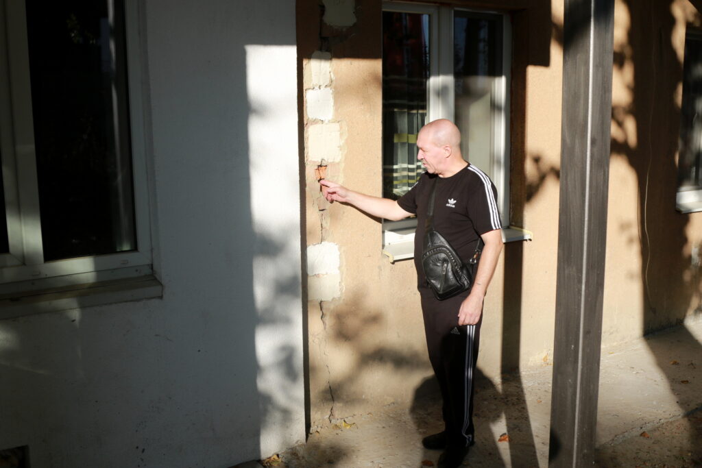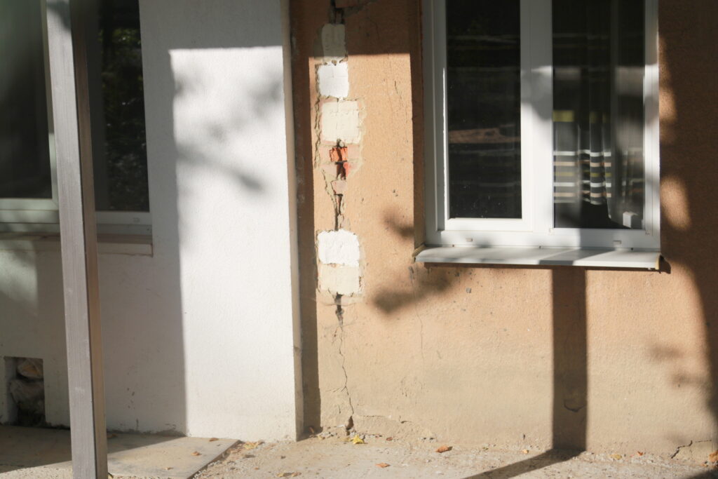 Журналісти 4studio зробили фоторепортаж з місця події, де видно тріщини та маяки, які були встановлені на тріщини.