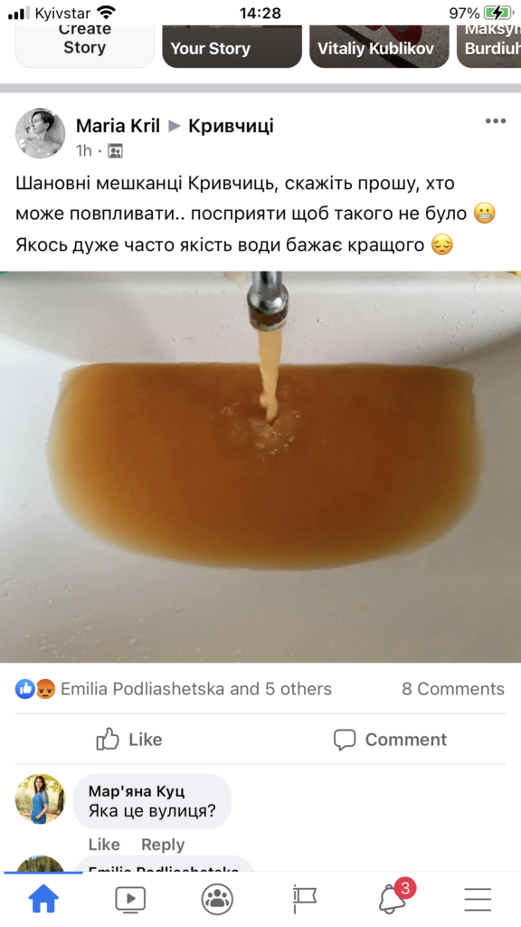Користувачі повідомляють, яка вода тече із крану на вулиці Дорога Кривчицька, 86.