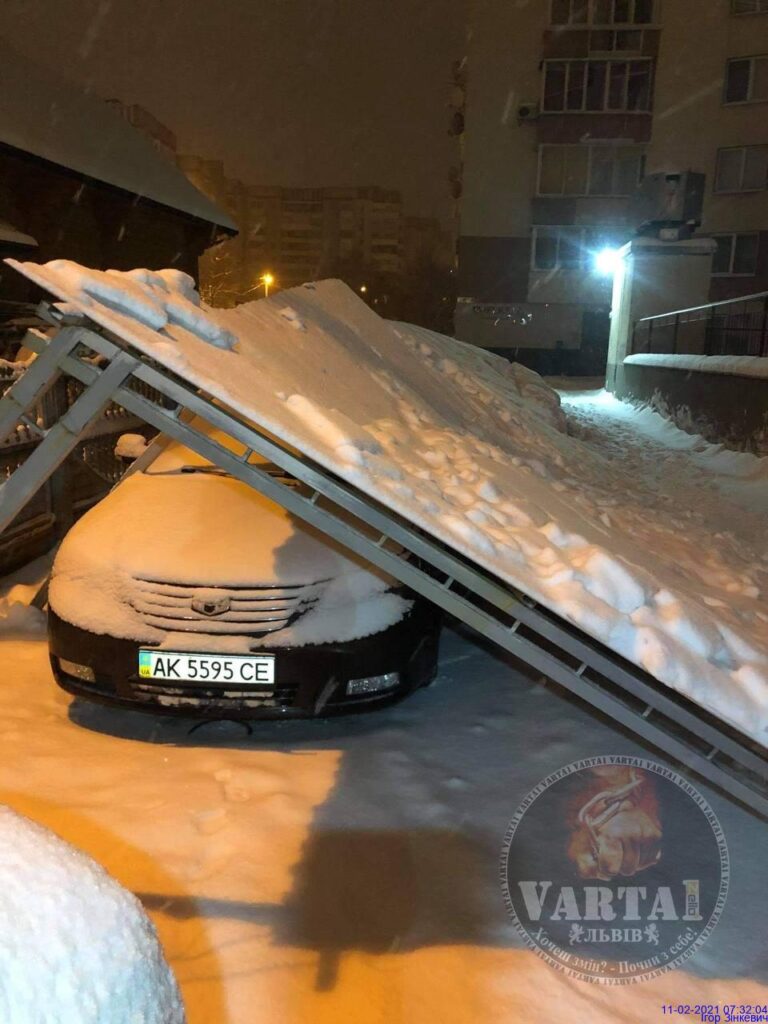 «О 07:00 на вулиці Панча 18Б повалило накриття для аато від кількості снігу», – йдеться у повідомленні.