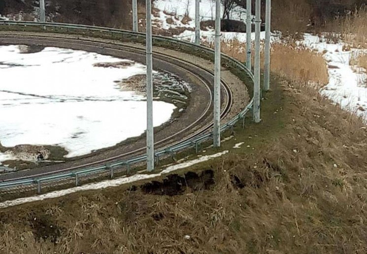 У Львові на кінцевій зупинці №8 трамвая стався зсув ґрунту.