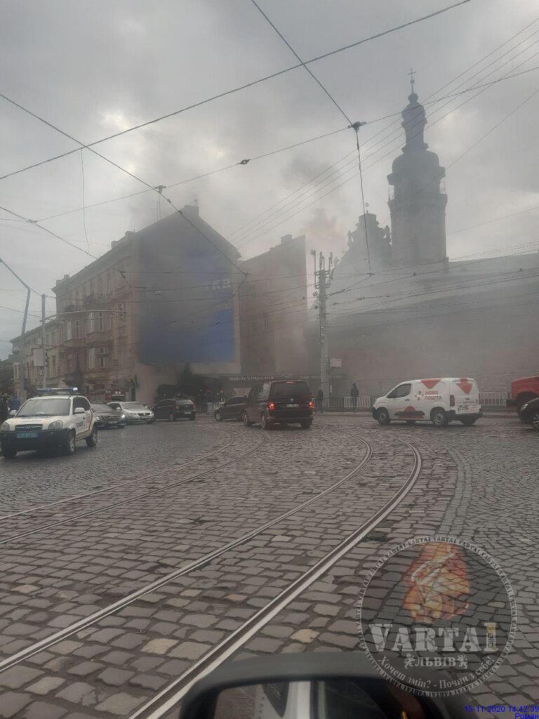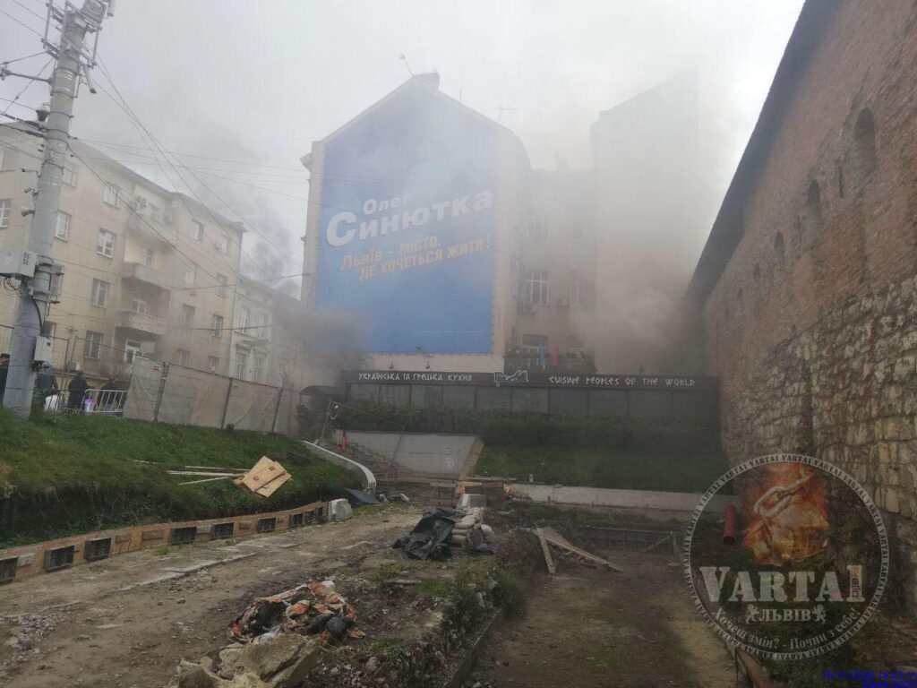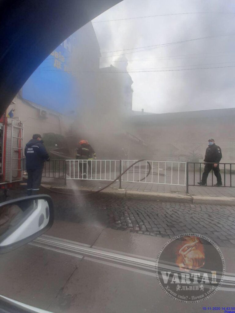 Як повідомляється, горить кафе на вулиці підвальній, колишній ресторан “Панська чарка”, тепер – “Ресторан Греко”.
