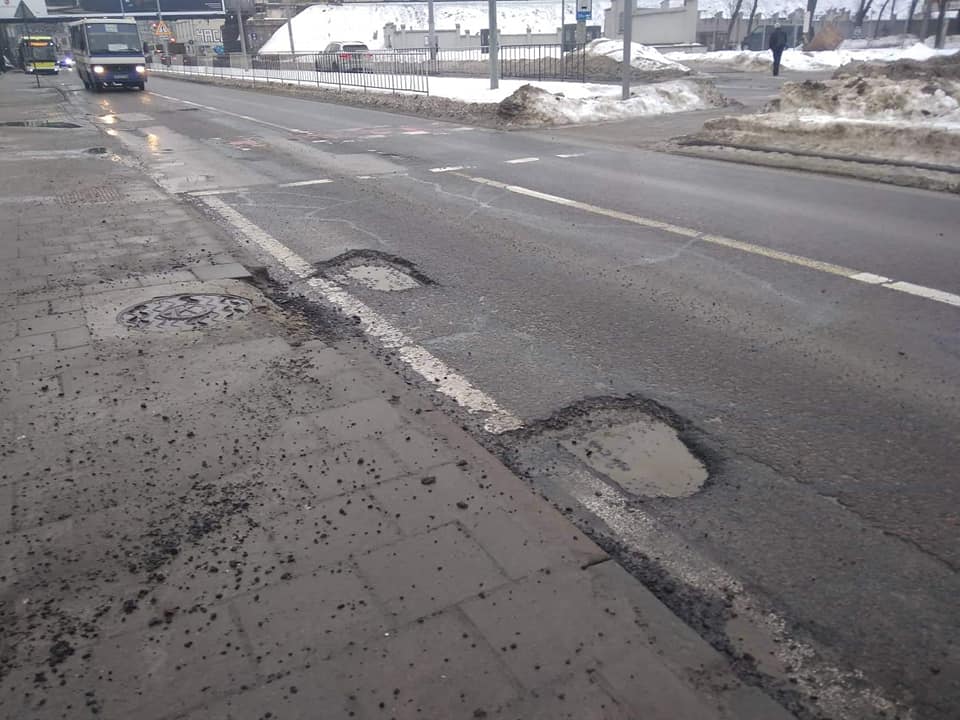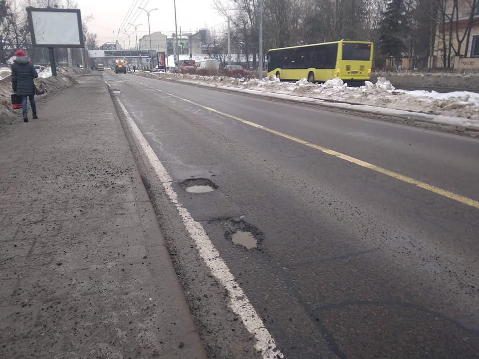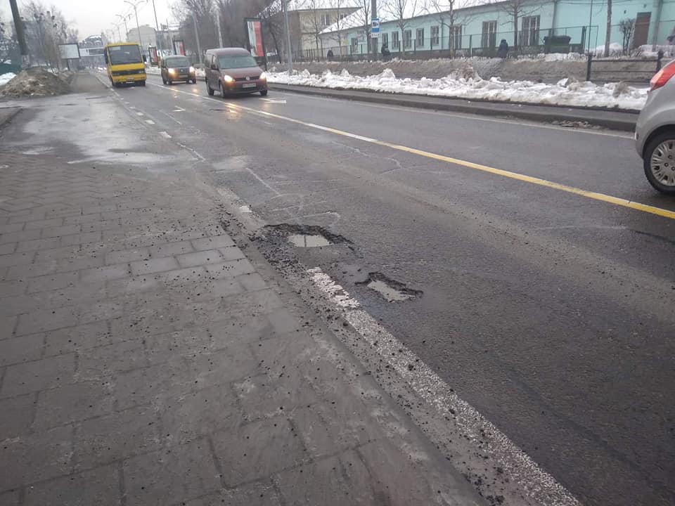 У Львові після потепління асфальт на дорозі зійшов разом зі снігом.