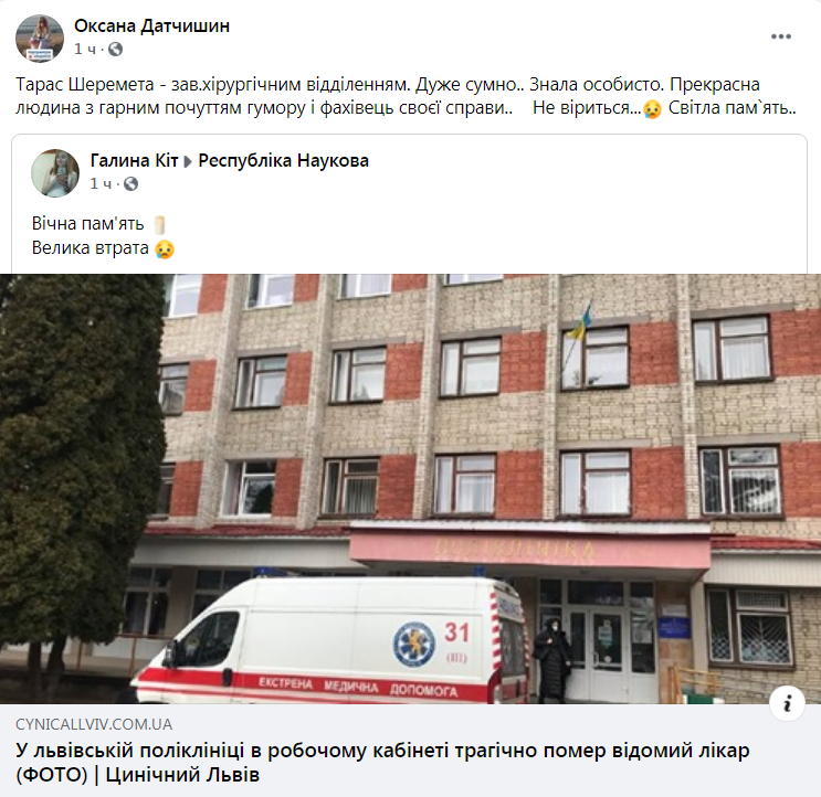 Позначки: лікар, поліклініка, смерть, Тарас Шеремета