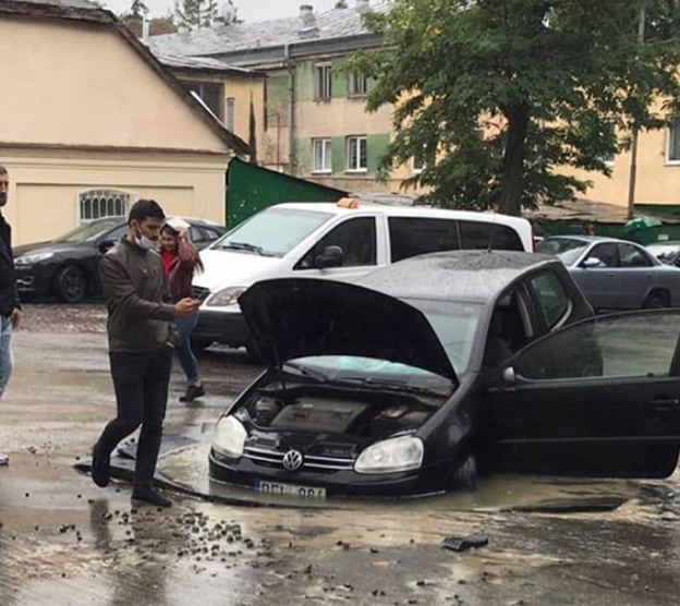 У Львові на вулиці Пекарській автомобіль провалився під асфальт.