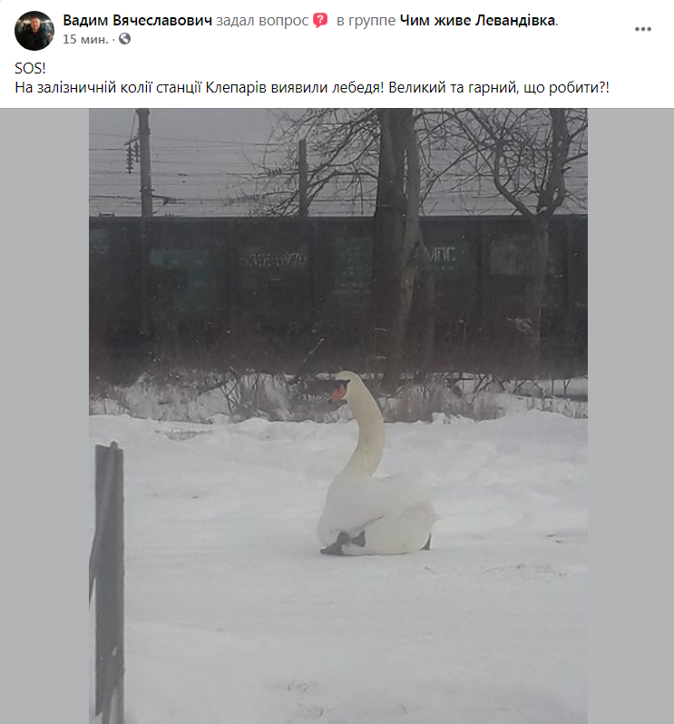 «На залізничній колії станції Клепарів виявили лебедя! Великий та гарний, що робити?!»,- зазначає Вадим Вячеславович у коментарі до світлин оприлюднених на сторінці спільноти «Чим живе Левандівка» у ФБ.