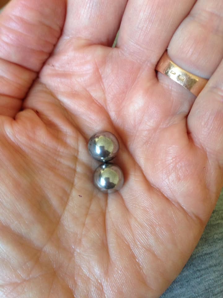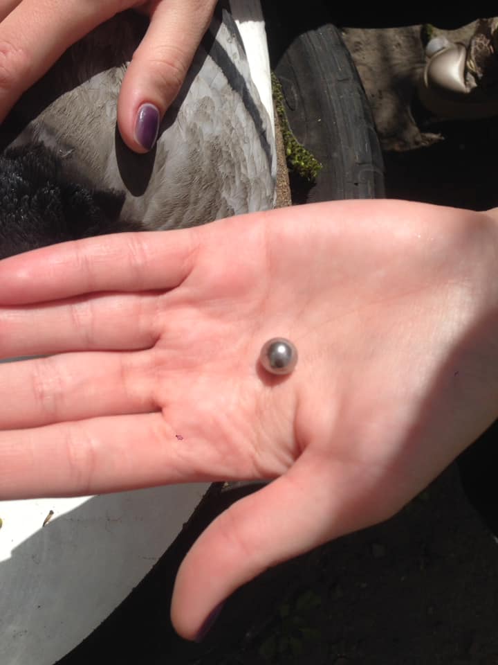 “Такі кульки знайшли сьогодні поруч біля птаха. У голуба велика дірка в шиї, ймовірно пошкоджено нервові ланки бо виглядає що нога паралізована та періодично сіпає головою. Хто підкаже, чи можуть таким стріляти?” – підписала вона фото.