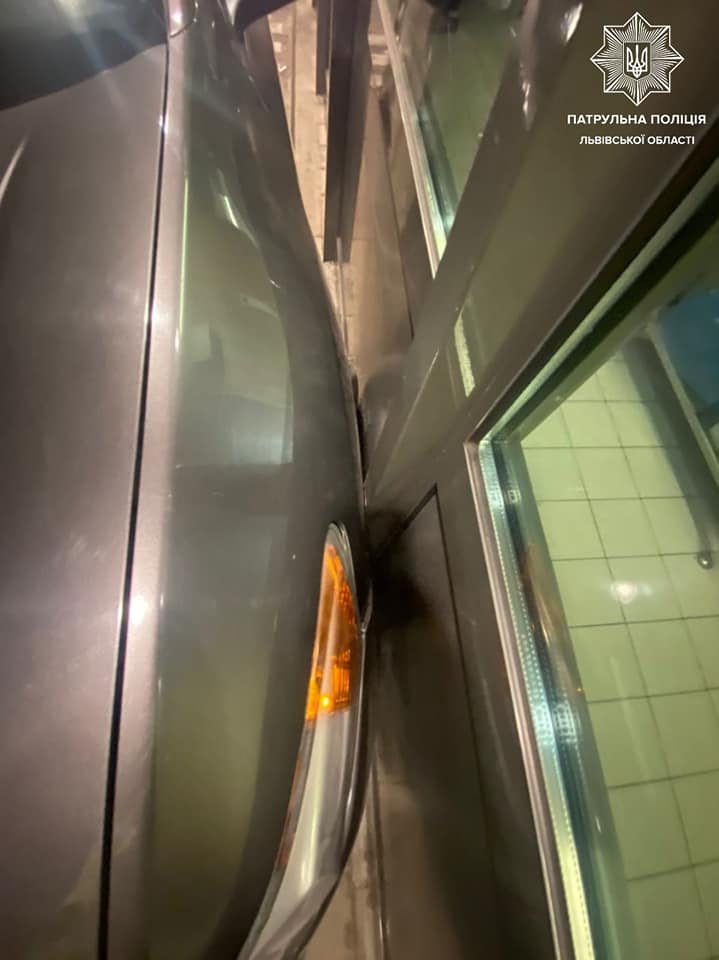 У Львові нетверезий водій заїхав поласувати фаст-фудом і врізався на очах патрульних у стіну закладу.