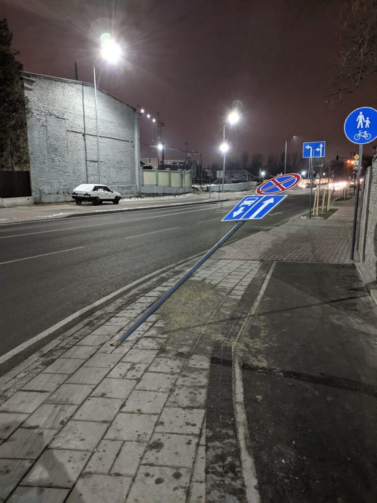 У спільноті “Гарячої лінії” також повідомляють, що на перетині вулиць Левандівської та Шевченка “нахилився” дорожній знак.