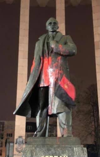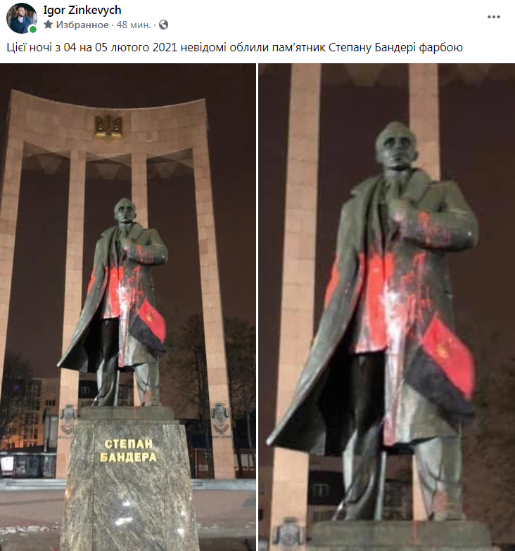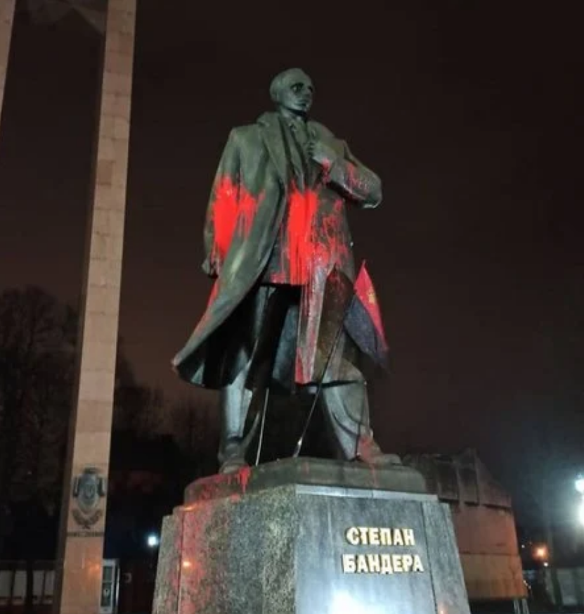 Цієї ночі з 04 на 05 лютого 2021 невідомі облили пам’ятник Степану Бандері фарбою