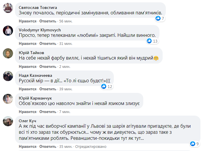 Як пише Zaxid.net, у поліції Львівщини розповіли, що повідомлення про пошкодження пам’ятника надійшло близько 2:30 ночі. Попередньо відомо, що невідомі особи кинули в пам’ятник щонайменше дві пляшки з червоною фарбою. Унаслідок постамент пошкоджений з переднього та заднього боку.