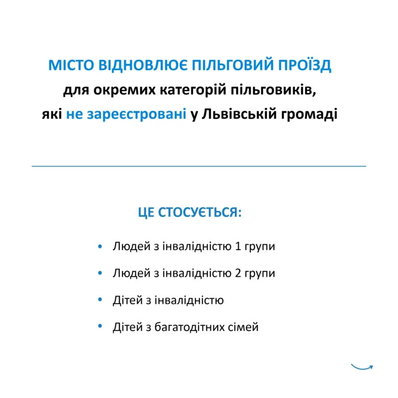 Місто відновлює пільговий проїзд для окремих категорій мешканців, які не зареєстровані у Львівській громаді. Відповідне рішення ухвалили 24 квітня на засіданні виконавчого комітету Львівської міської ради.