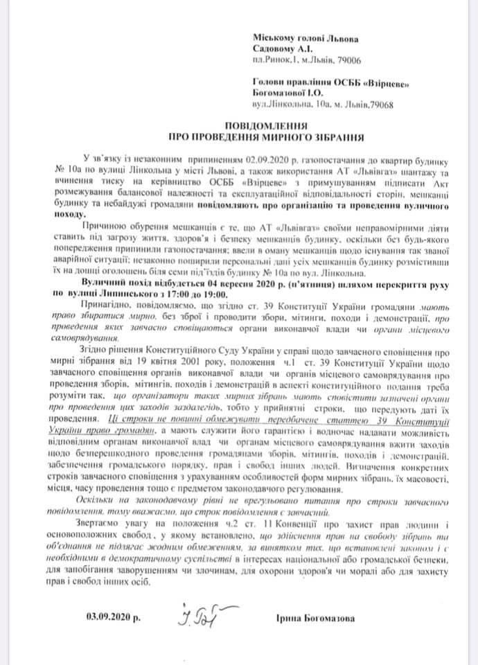 Про необхідність підписання ми неодноразово інформували голів ОСББ (прикріпляємо зразок листів, які надсилали до голів ОСББ). Представники АТ «Львівгаз» пояснювали про наслідки відсутності підписаного між споживачем та оператором ГРМ акту.