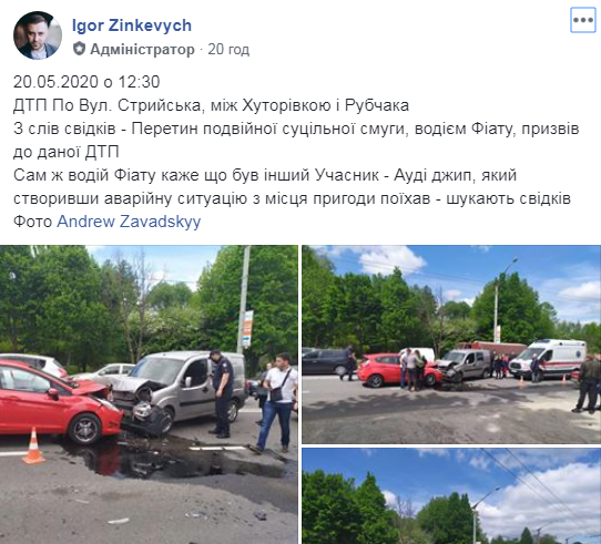 Як пише “Четверта студія”, у департаменті цивільного захисту Львівської ОДА повідомили, що дорожньо – транспортна пригода сталася 20 травня, близько 12:15 год., на вул. Стрийській.