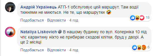 У коментарях городяни, зокрема, пишуть, що «В 37 маршрутці завжди брудно, водії ще ті хами, графіків не дотримуються, на другій зупинці від кінцевої можуть не зупинятися».