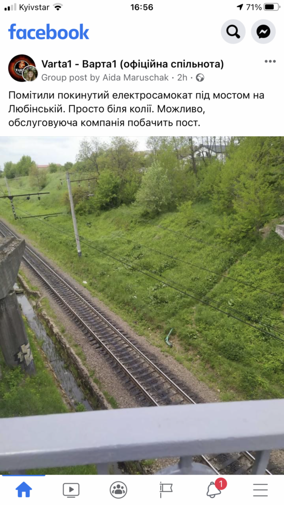 Як йдеться у повідомленні, самокат помітили під мостом на Любінській.