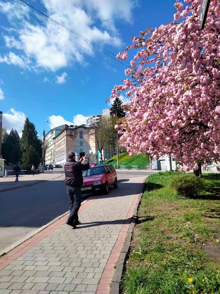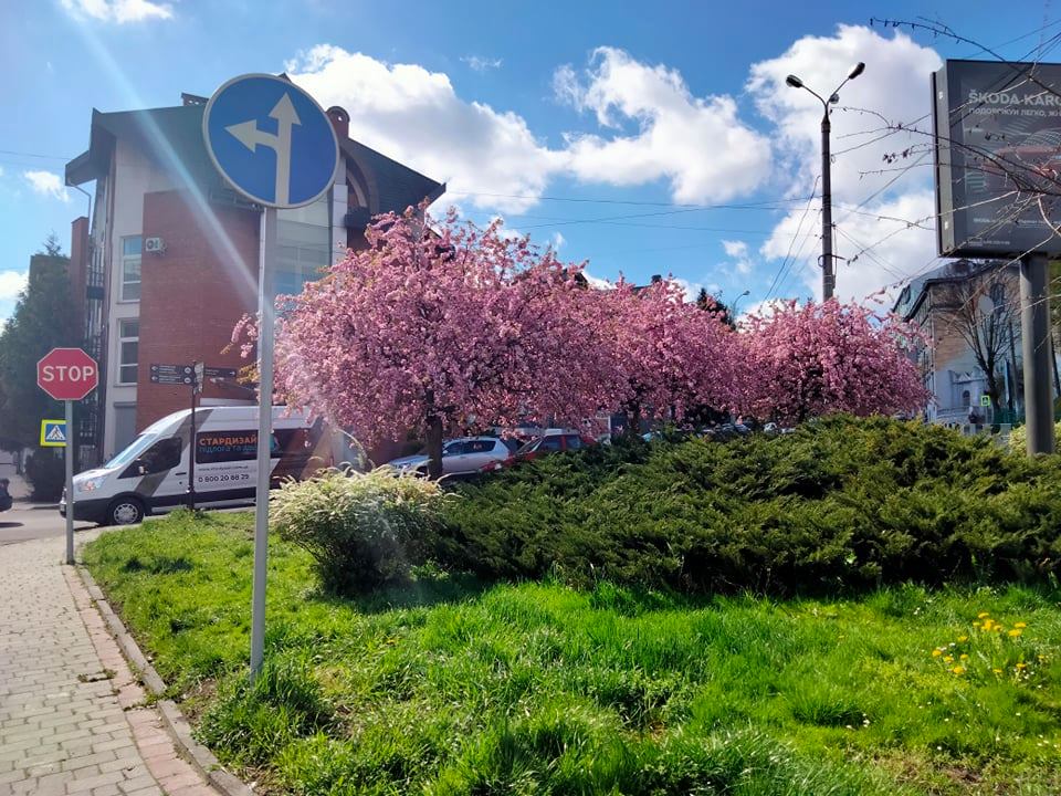 Найближче до центру міста цвітуть японські вишні на площі Митній та на вулиці Городоцькій (неподалік церкви Анни).