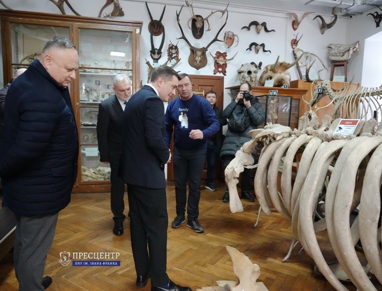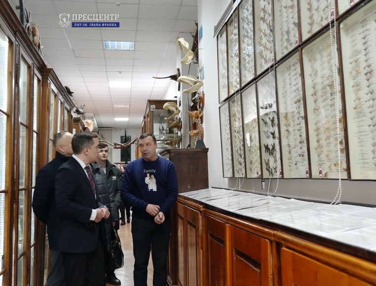 На завершення візиту заступник Міністра відвідав Зоологічний музей, який є найстарішим серед університетських музеїв в Україні і одним з найдавніших в Європі. Колекції музею складаються з понад 180 000 експонатів, які є надзвичайно важливими джерелами дослідження проблем змін навколишнього природного середовища, збереження і відновлення біорізноманіття як основи функціонування біосфери. Так, до експозиції музею входить 10 000 експонатів, розташованих за систематичним принципом – хронологія огляду експонатів музею переплітається із складністю будови тіла тварин: від комах та риб до різнобарв’я пташиного царства та до огляду ссавців.