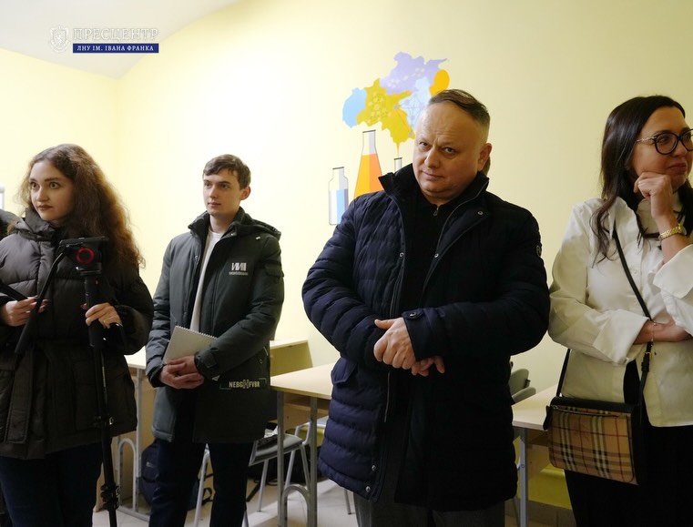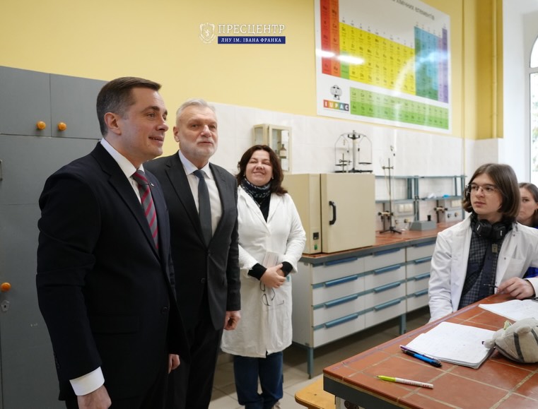 Під час візиту заступник Міністра мав нагоду поспілкуватися зі студентами, які працюють у лабораторії кафедри неорганічної хімії, а також відвідати хімічну лабораторію Львівської обласної малої академії наук, яка розташована на факультеті. Обладнання лабораторії дозволяє учням реалізовувати власні дослідницькі проєкти ще зі шкільного віку. Зокрема, юні науковці мають змогу проводити спектрофотометричні дослідження для визначення концентрації забруднювачів довкілля та контролю якості продуктів. Також лабораторія оснащена необхідним інвентарем, витяжними шафами, сучасним мікроскопом, що уможливлює пізнання кристалів солей і мінералів, а також дозволяє вивчати поверхневі структури різних матеріалів, наприклад, волокон і полімерів. Унікальність лабораторії полягає саме в наявності обладнання, на якому учні разом із науковими керівниками можуть проводити власні наукові дослідження, а саме: оптичного мікроскопа MICROmed, спектрофотометра СПЕКТРО ЛАБ V-1150/UV-1150, комп’ютерної мінілабораторії LabQuest, а також аналітичних ваг AXIS, сушильної шафи SNOL, лабораторної магнітної мішалки ЛММ-2.