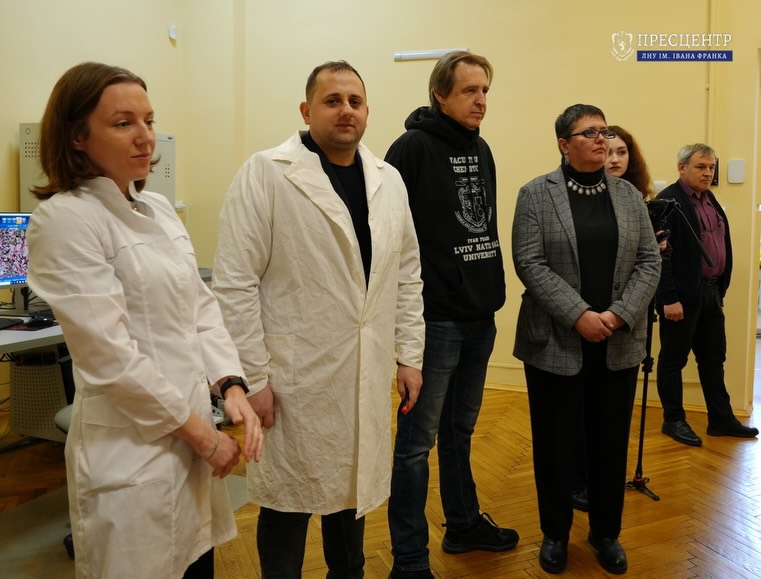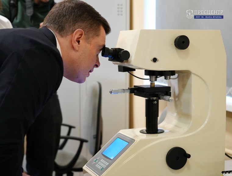 Насамперед Микола Трофименко оглянув лабораторії, розташовані на хімічному факультеті. Зокрема, працівники Центру колективного користування науковим обладнанням «Лабораторія матеріалознавства інтерметалічних сполук» розповіли заступнику міністра про актуальні дослідження, які реалізовують дослідники, працюючи з такими сучасними приладами: скануючим електронним мікроскопом Tescan VEGA3 LMU для аналізу морфології поверхні різноманітних матеріалів з роздільною здатністю до 3 нм, який оснащений енергодисперсійним рентгенівським аналізатором від Oxford Instruments (з детектором X-MaxN20) для проведення хімічного аналізу від Be до Cf; рентгенофлуоресцентним спектрометром ElvaXPro для хімічного аналізу від Na до U, мікротвердометром Novotest для визначення мікротвердості матеріалів методом Віккерса; синхронним термоаналізатором LINSEIS STA PT1600 для встановлення температурних інтервалів стабільності сполук та визначення термодинамічних параметрів.