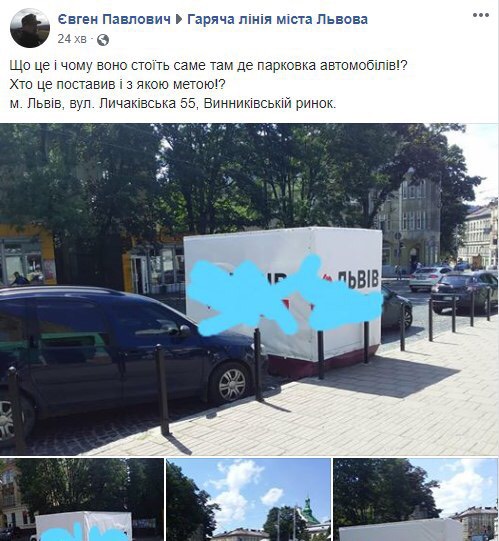 “Що це і чому воно стоїть там, де парковка автомобілів? Хто це поставив і з якою метою?”, – йдеться у дописі.