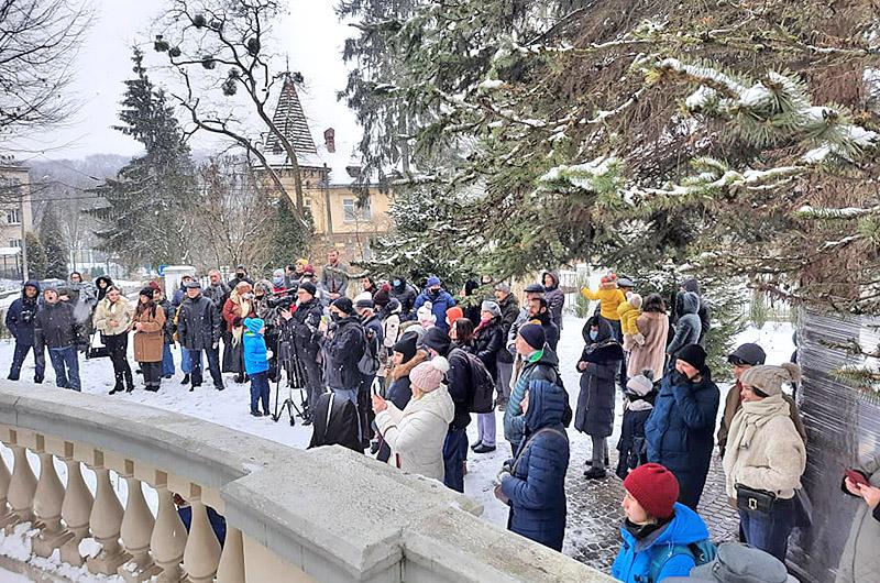 Послухати колядників зібралося чимало людей, тож дійство через карантин відбувалося у музейному саду.
