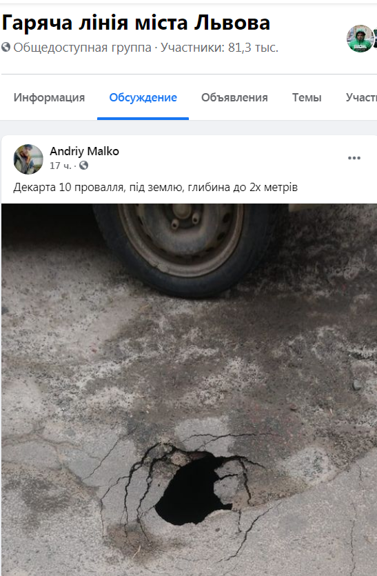 Позначки: вулиця, Гаряча лінія міста Львова, провалля