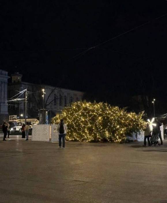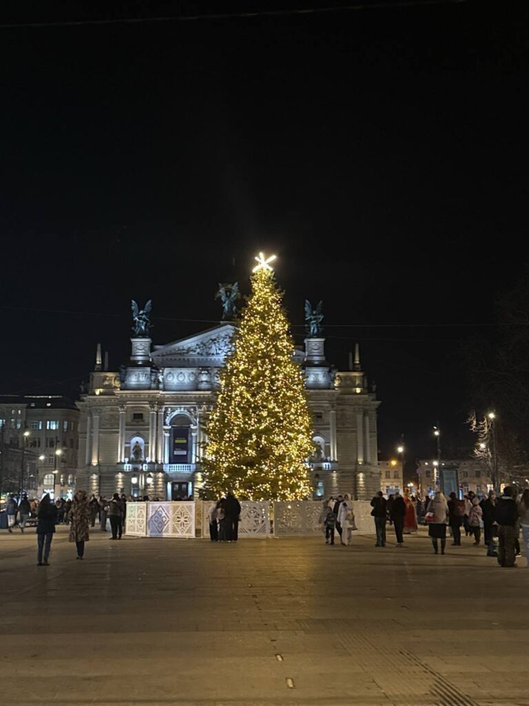 Головна різдвяна ялинка Львова стоїть. Вона й не падала.