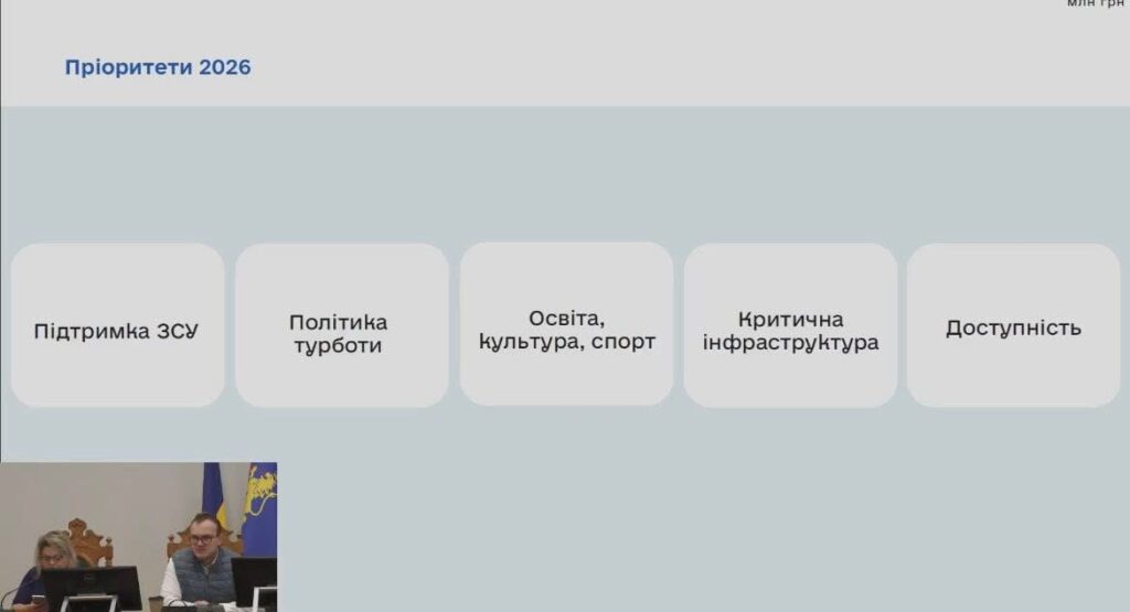 Визначено пріоритети фінансування 2026. Це – підтримка ЗСУ, політика турботи, освіта, культура, спорт, критична інфраструктура та доступність.